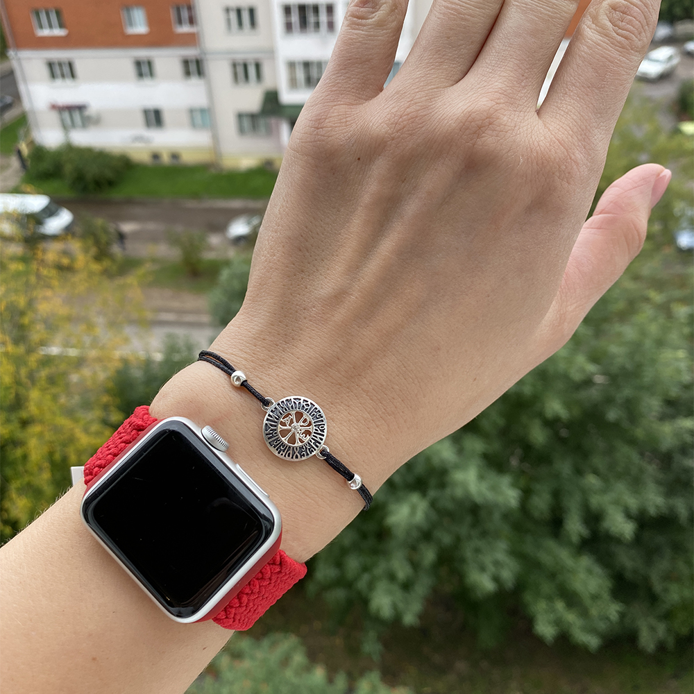 браслета изменяется с помощью сдвигания узелков нити. Подойдет на