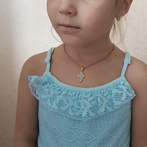 Внуку на крещение купила красивый крестик и шнурок. Подарок прекрасно упакован: есть подарочный конвертик из приятной ткани и сертификат, салфетка для чистки ювелирных изделий