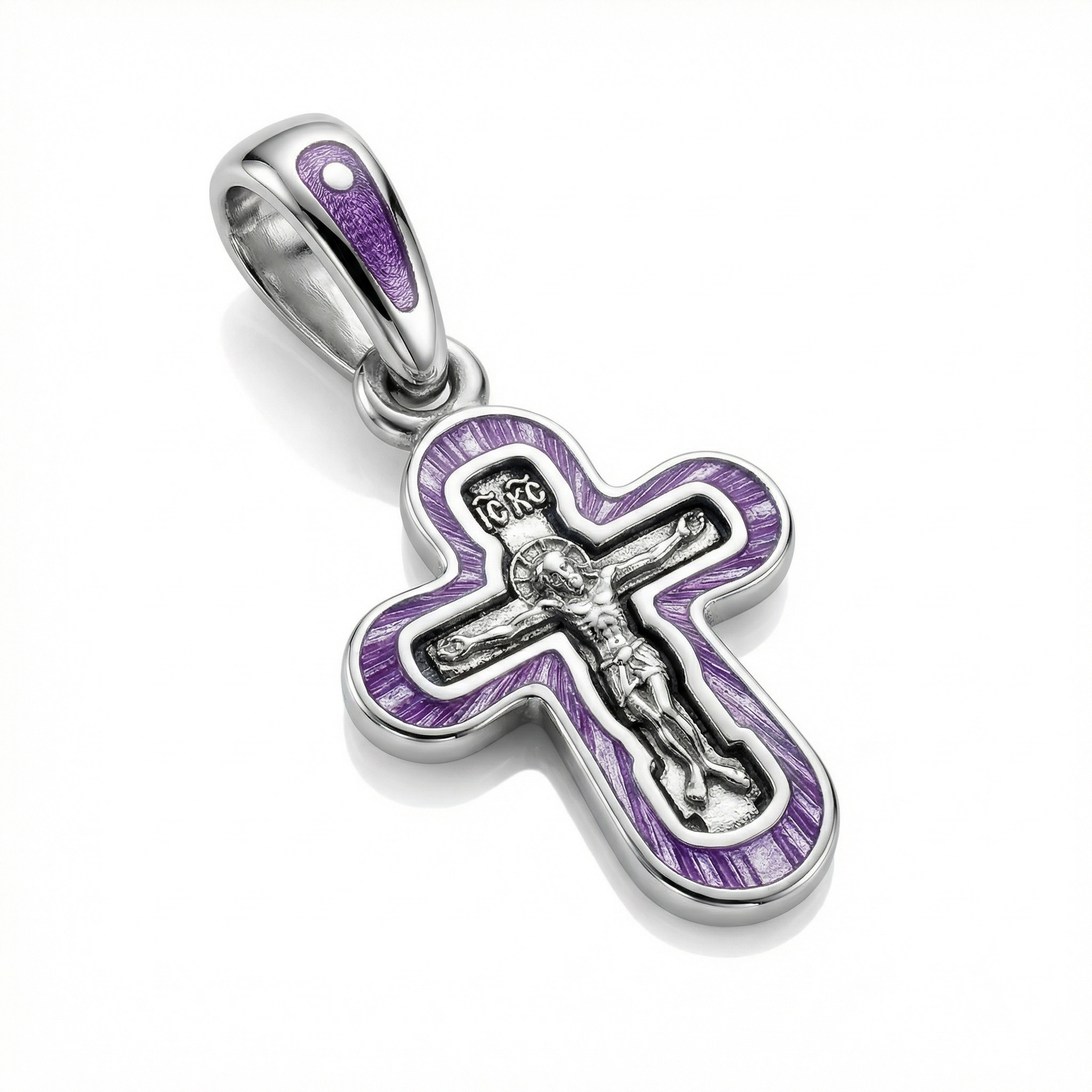 Крест выполнен в технике горячего эмалирования. Эмаль издревле использовалась в церковном прикладном искусстве. В церковной богослужебной практике каждый цвет имеет свой генезис, глубинное значение. Поэтому, именно эмаль имеет помимо прочего (изображения, форма, образы…) более глубокое религиозное измерение.