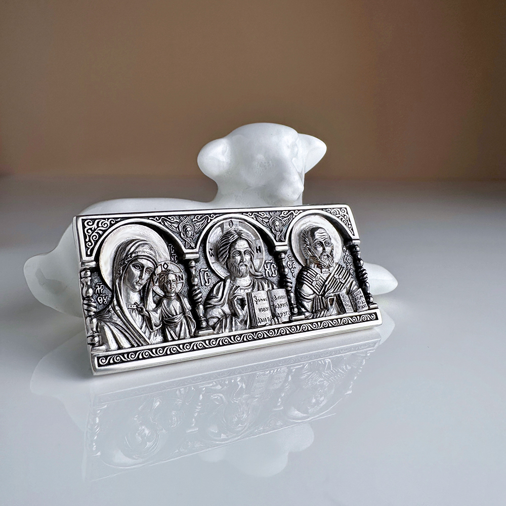 В центре триптиха икона Спас Вседержитель (Пантократор), правая рука