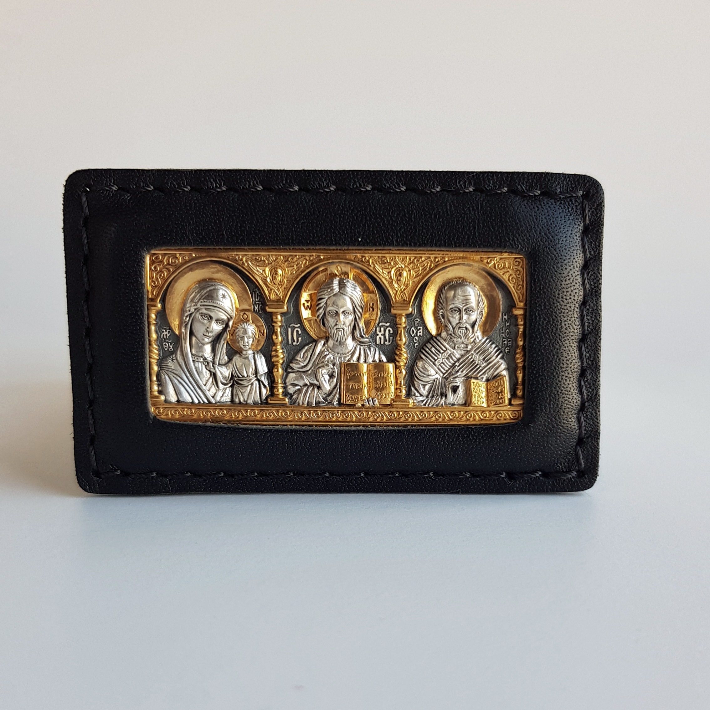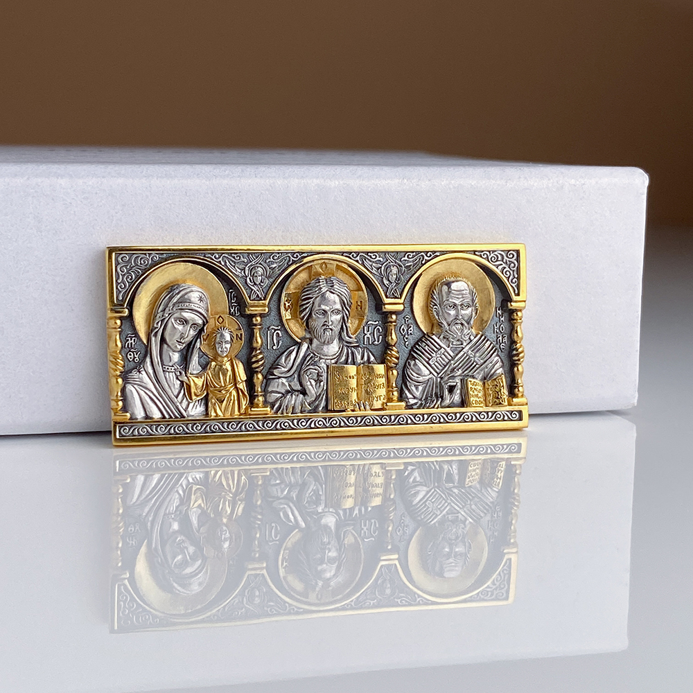 Икона в автомобиль из серебра с золотом триптих
