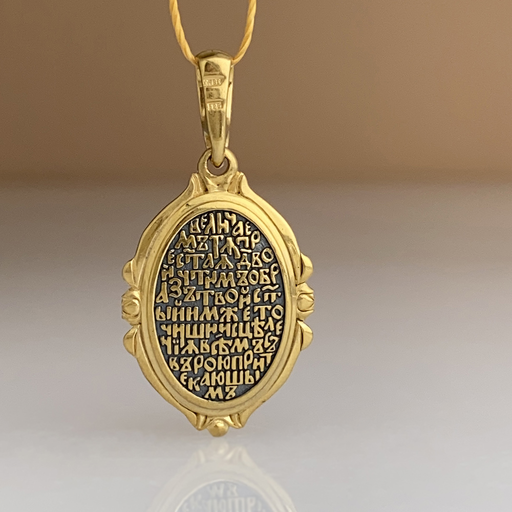 Образок-подвеска выполнен в технике мелкой металлопластики. На кулоне