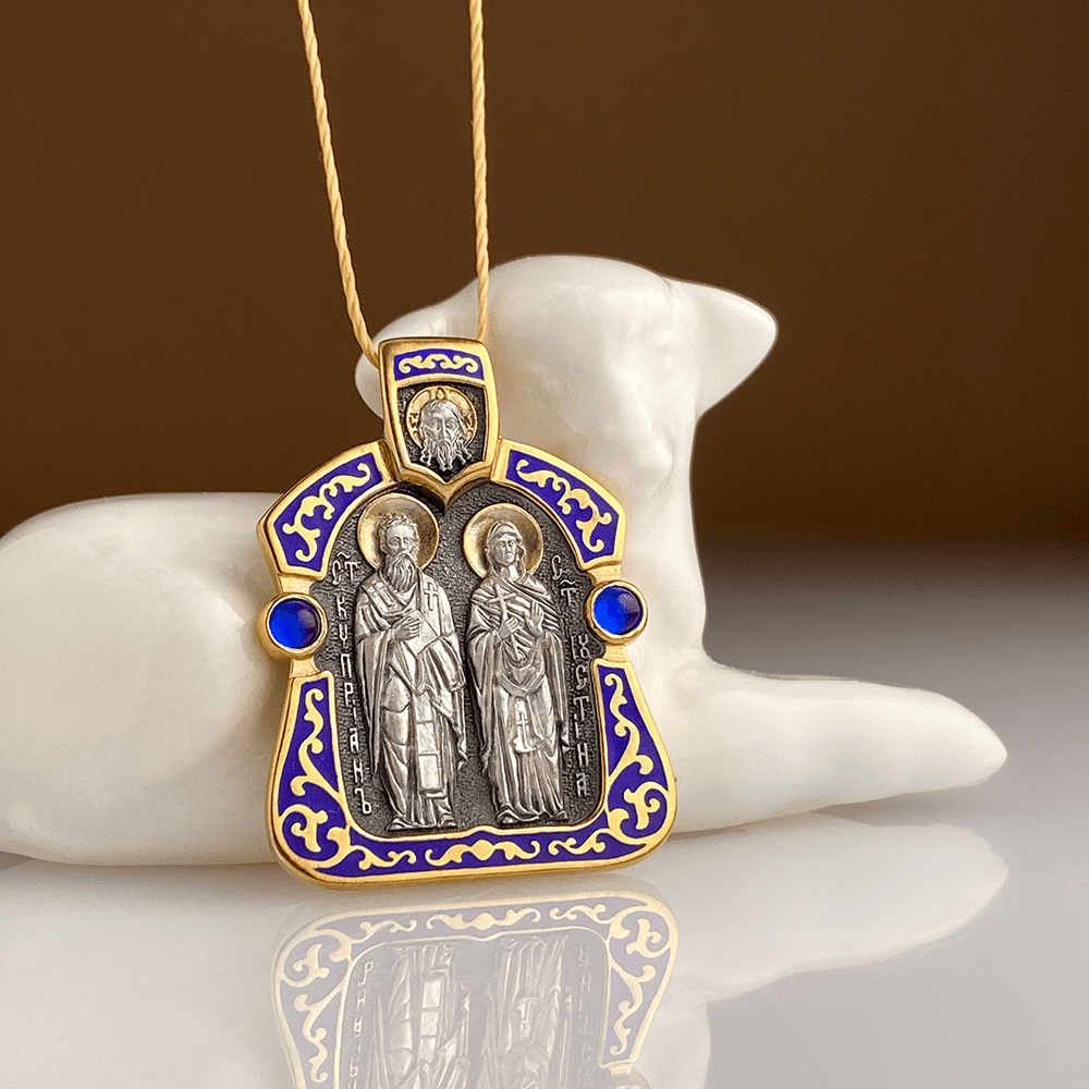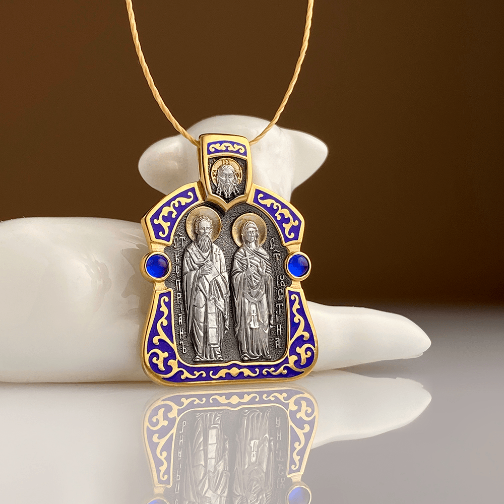 Состав: серебро 960 пробы, жёлтое золото 999 пробы, горячая эмаль, искусственный сапфир