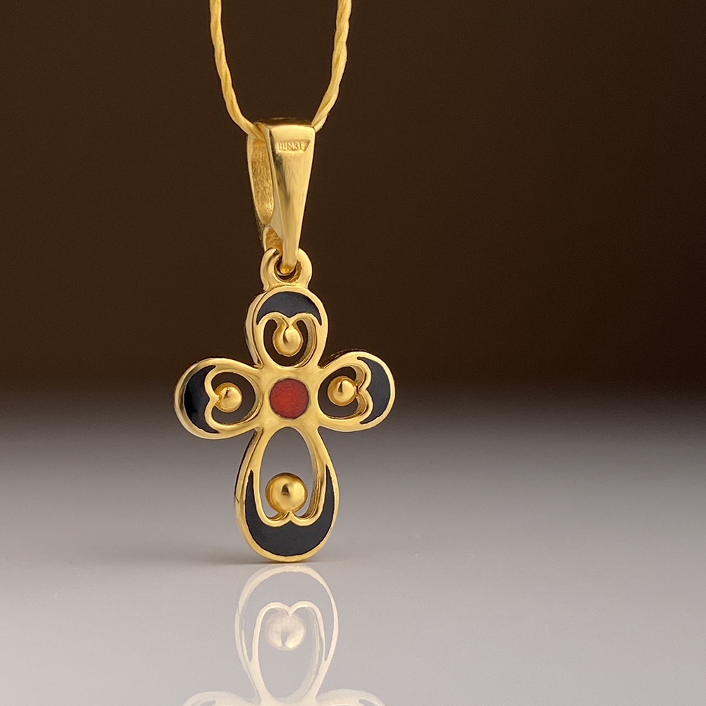 Крест выполнен в технике горячего эмалирования. Эмаль издревле