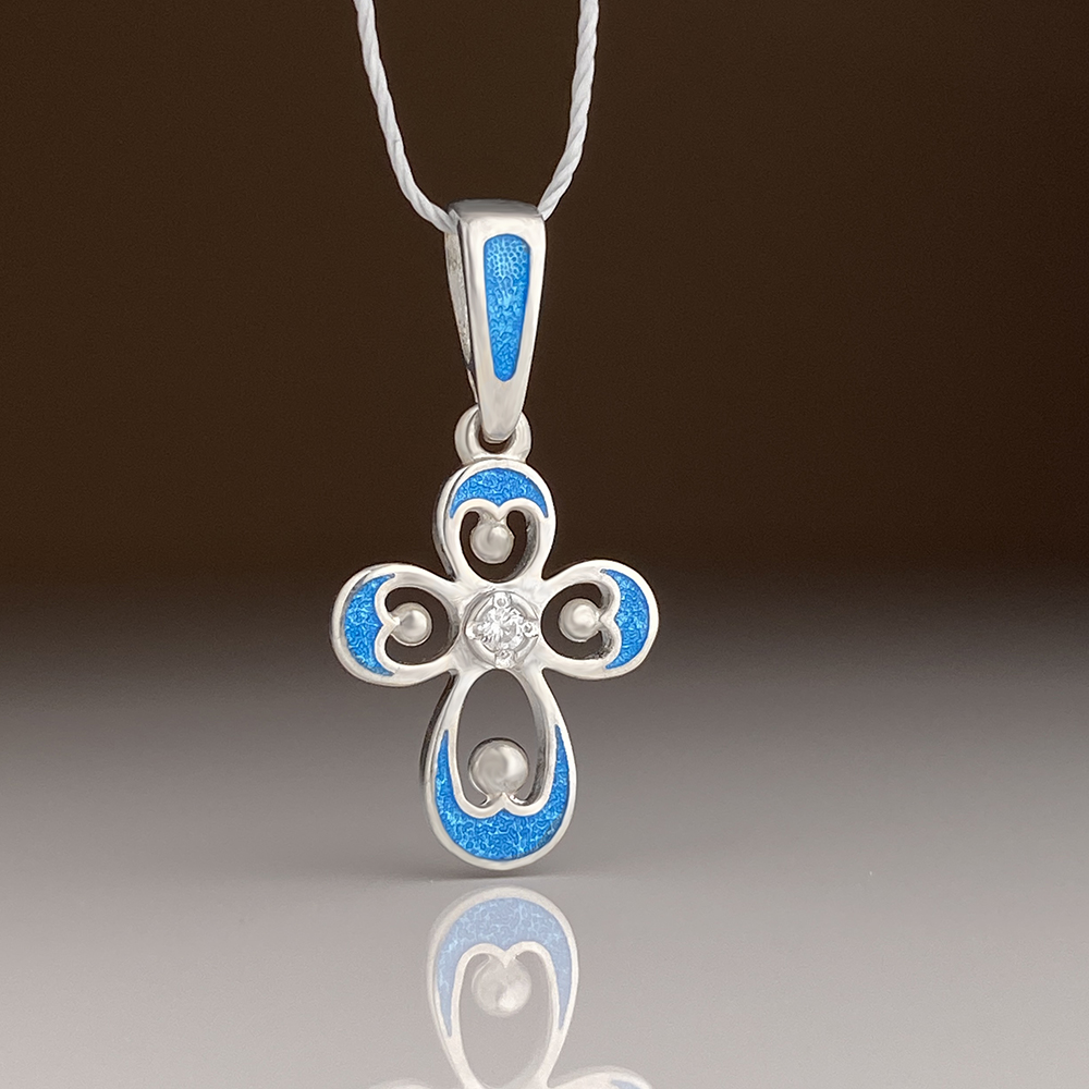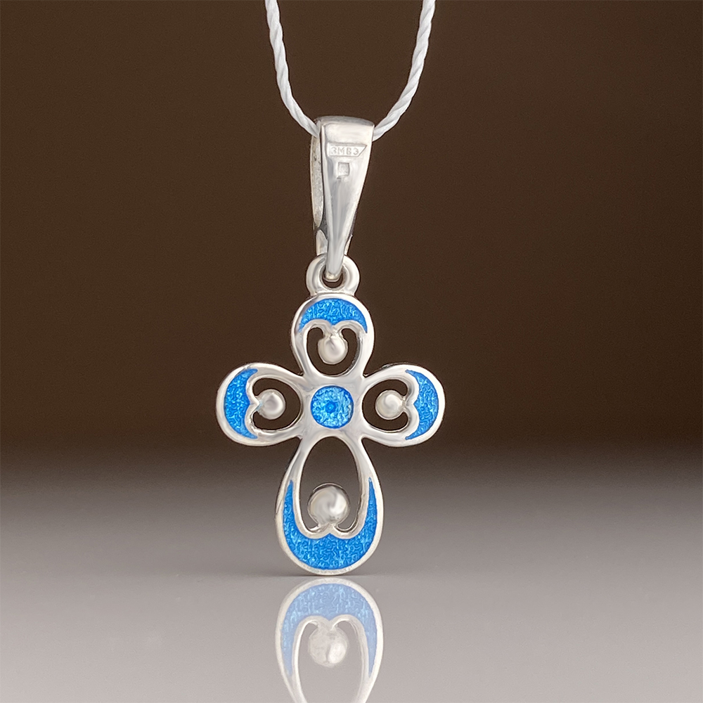 Крест выполнен в технике горячего эмалирования. Эмаль издревле
