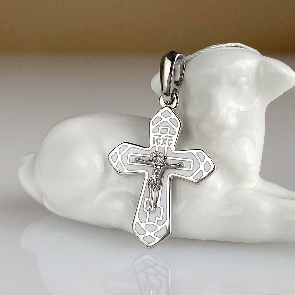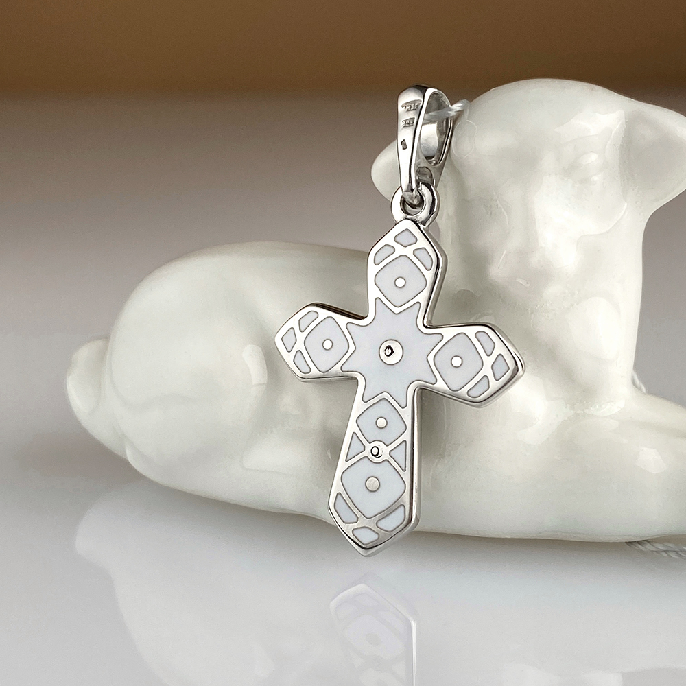 Крест выполнен в технике горячего эмалирования. Эмаль издревле