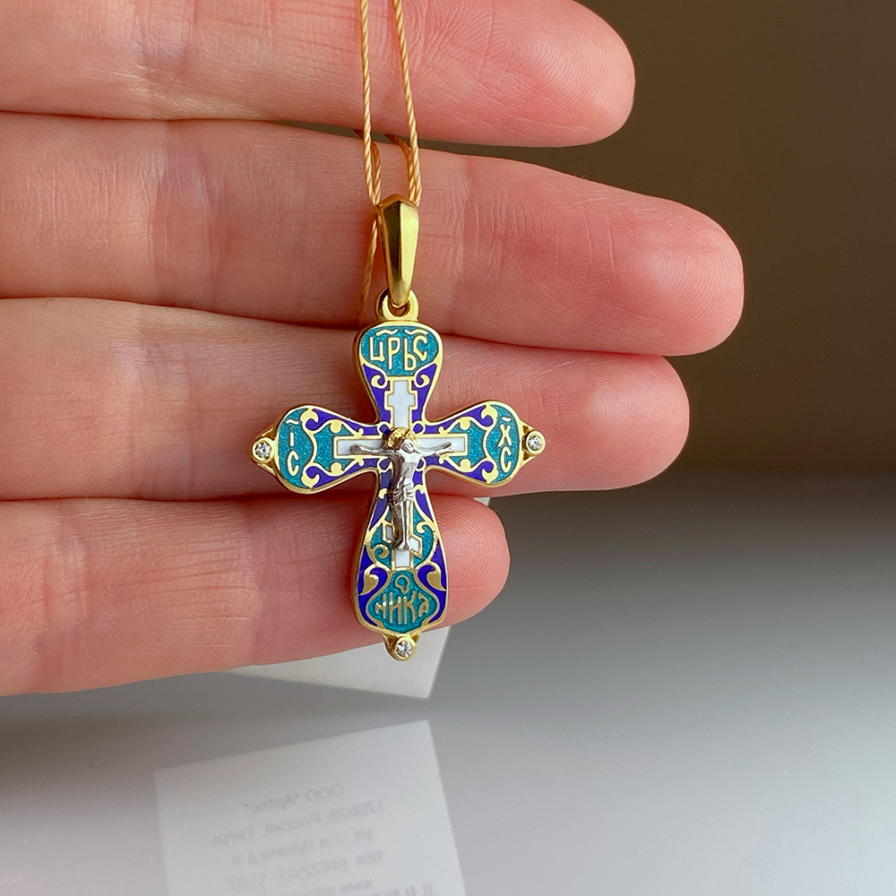 Крест выполнен в технике горячего эмалирования. Эмаль издревле