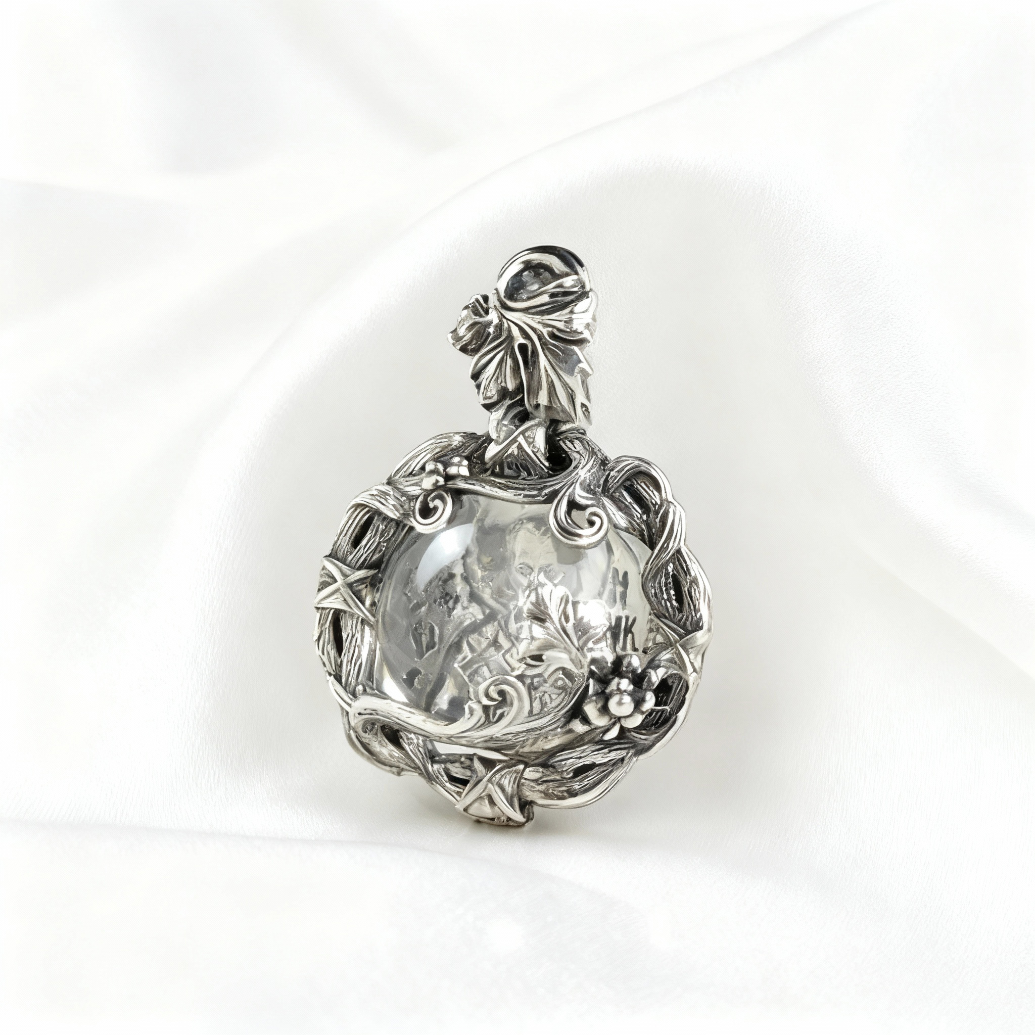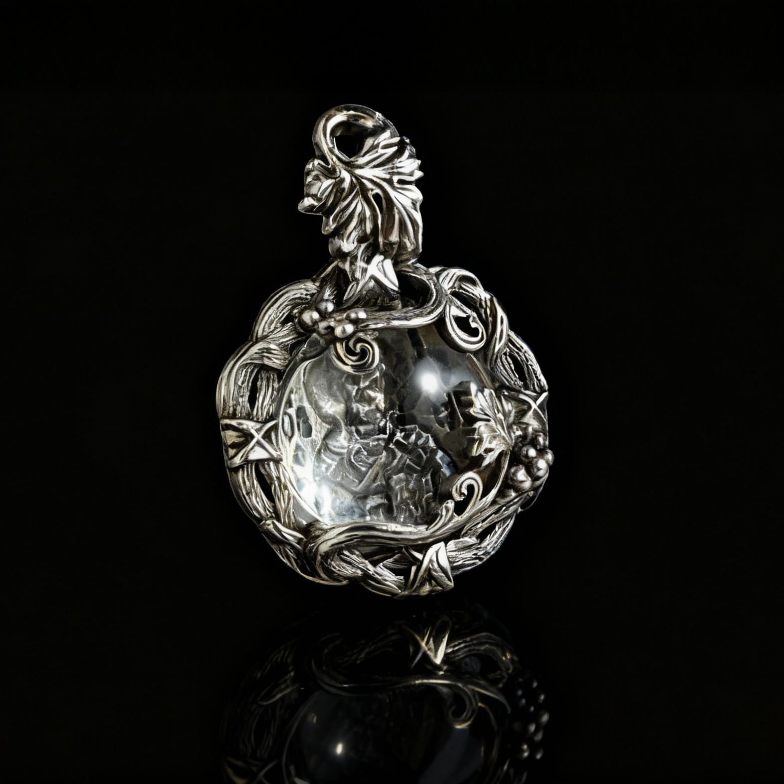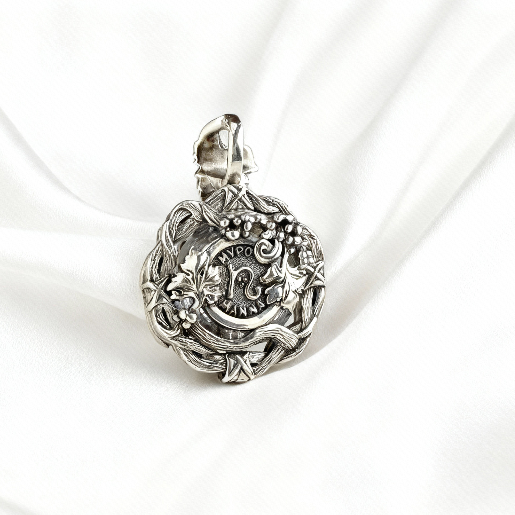 Подвеска «Святой Николай с Благодатным Миро» создана из серебра 925-й пробы и украшена виноградной лозой, бережно обвивающей образ святого. Этот символ восходит к словам Христа: «Я есмь истинная виноградная Лоза, а вы — ветви» (Ин. 15:5). Лоза олицетворяет Спасителя, а гроздья винограда — всех христиан, соединённых в вере.