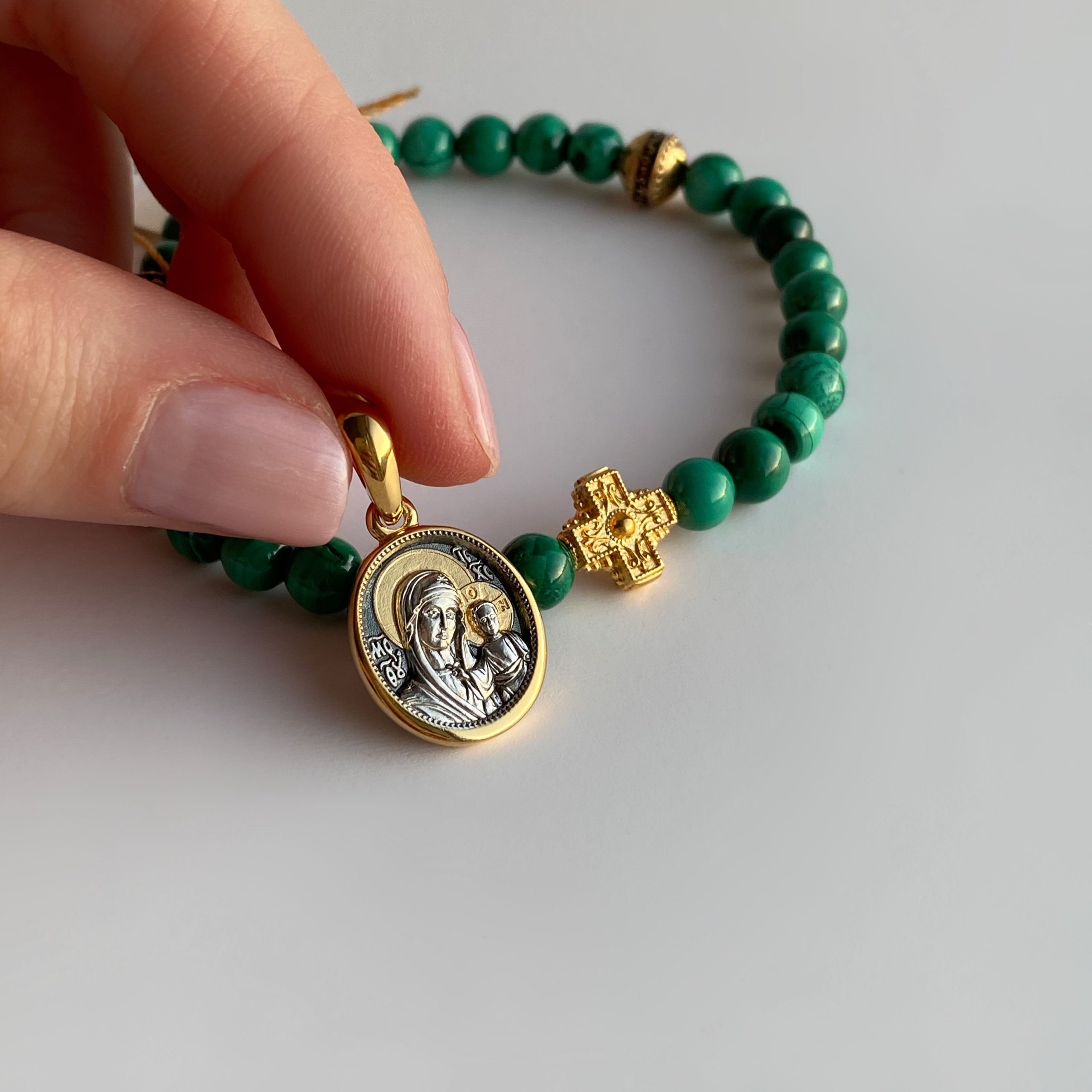 Православный браслет-чётки «Малахит» серебро/золочение