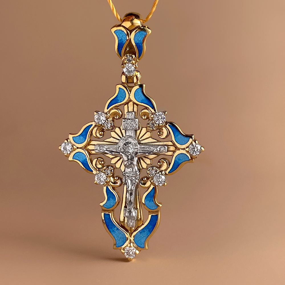 Состав: серебро 960 пр., золото 999 пр. (золочение), горячая эмаль, 13 кристаллов Swarovski