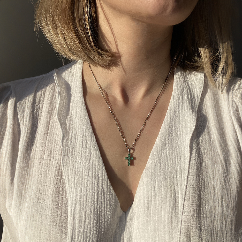 Состав: серебро 925 пробы, родий (покрытие), природные изумруды 3 мм